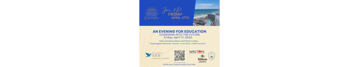 “An Evening for Education,” presented by EPIC Sponsor, The St. Joe Community Foundation, returns Friday, April 17th at the Hilton Sandestin Golf and Beach Resort and Spa benefitting Walton Education Foundation, a nonprofit serving its mission to impact and support education in Walton County, Florida.